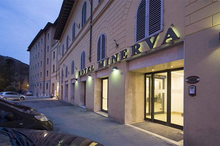 3성급의 Minerva호텔은 시에나 시내 중시에 위치하고 있는 호텔로 1959년에 설립되었다. 호텔은 따뜻한 환대와 깨끗한 객실을 제공하고 있으며 59개의 객실에는 전화, 텔레비젼, 안전금고, 냉장고 등의 시설을 제공하고 있다. 기차역까지는 500미터 거리에 있다.