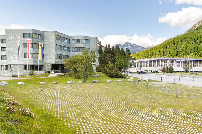 San Gian 호텔은 문화, 스포츠, 여가생활을 즐길 수 있는 호텔이다. 모든 객실은 St. Moritz에 거주하는 6명의 미술가들이 직접 그린 그림이 걸려 있다. 호텔 옆에 스키장, 크로스컨트리 시설, 하이킹 트레일과 테니스 코트가 있다. 호텔 안에는 St. Moritz에서만 맛볼 수 있는 요리가 제공되는 레스토랑이 있다. 낮 동안에는 햇볕이 비추는 테라스에서 식사를 즐길 수 있다. 그리고 저녁의 마지막은 아늑한 바에서 즐기는 것도 좋다.