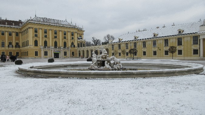 하얀 눈으로 뒤덮힌 쉔부른 궁전과 빈시립공원......