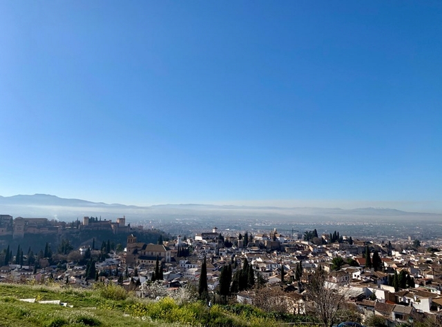 스페인 그라나다의 전망대에서 찍은 사진이에요. 왼쪽에 잘려서 보이는 게 알함브라 궁전입니다. 전망대에 오르기 전에 작은 마켓이 있는데 거기에서 파는 오렌지가 정말 최고였어요. 그쪽 골목에 있는 빵집도 엄청 저렴하고 맛있는 빵을 파니 검색해서 간식거리 사서 올라가시면 좋아요. 알함브라 궁전도 정말 좋았습니다.