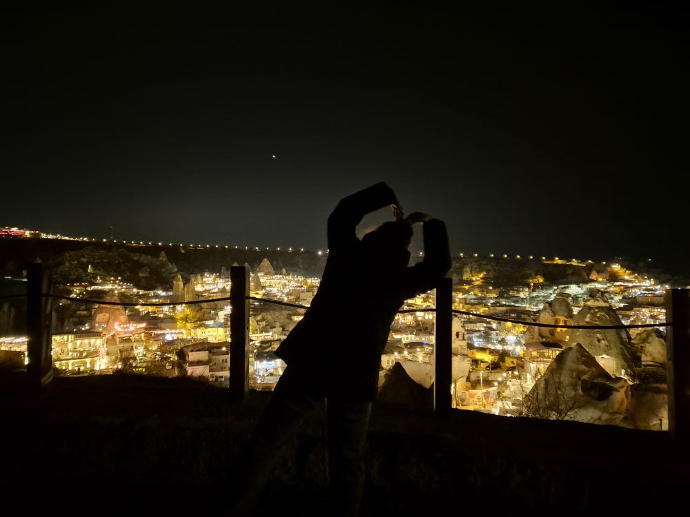 근처에 카파도키아가 다 보이는 곳이 있다고 해서 저녁에 올라가봤는데 너무 예쁘더라구요. 사실 두 번째 사진 찍을 때 난간에서 멀리 떨어진 안전한 곳인데도 제가 동공지진해서ㅋㅋㅋㅋ 남편한테 계속 '다 찍었어?' 물어봤던 기억이 있네요ㅋㅋㅋㅋ 야경도 아름다운 카파도키아 입니다.